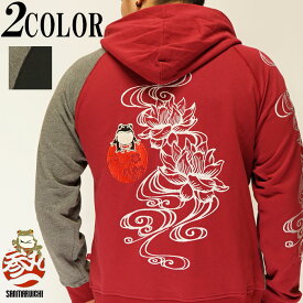 クーポン配布中 参丸一 サンマルイチ 総雲蛙(カエル) 粋で可愛い 和柄 長袖シャツ生地 パーカー wガーゼ素材で通気性良!!.